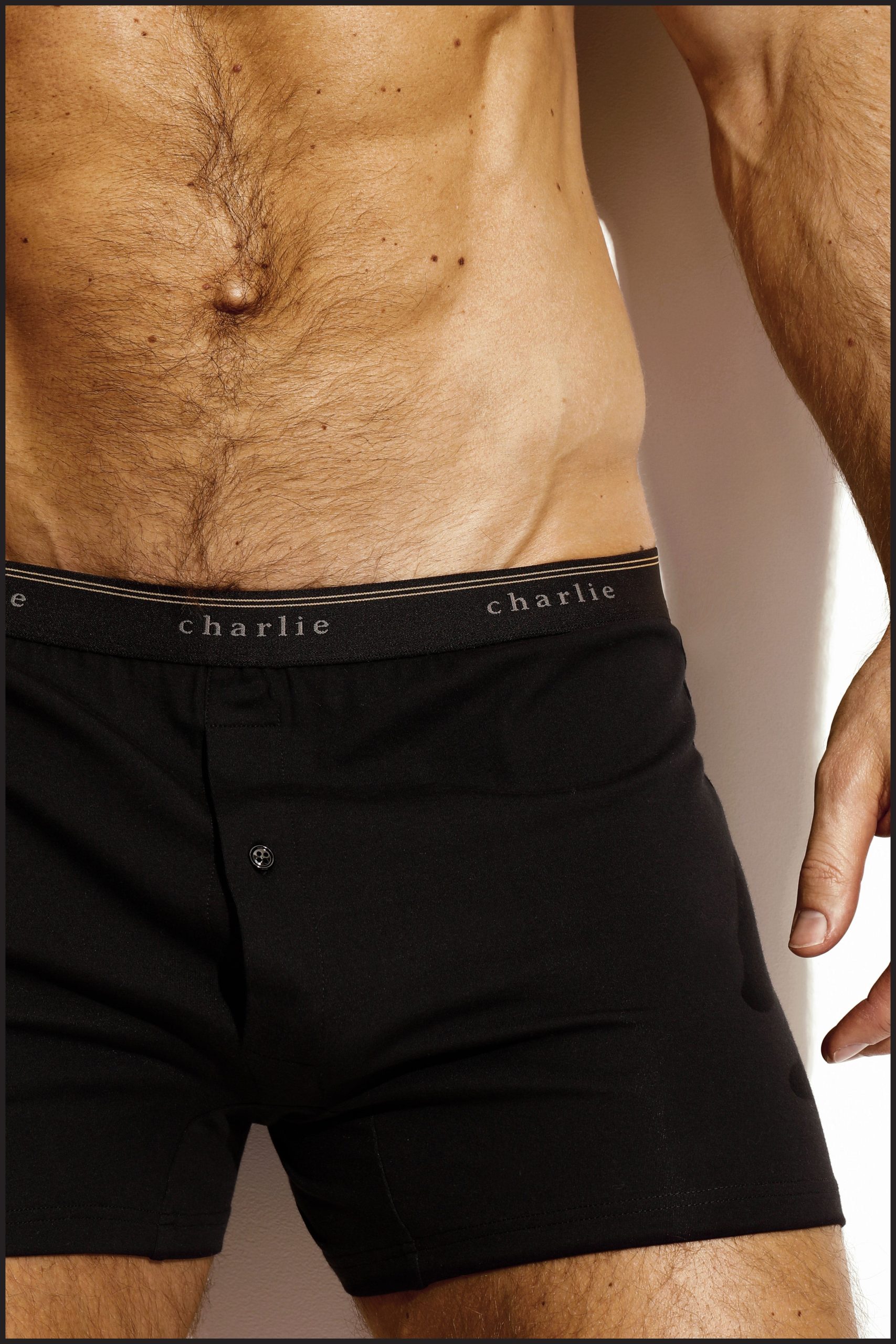 Black Charlie Classic Knit Boxer with black logo waistband elastic and button fly front.