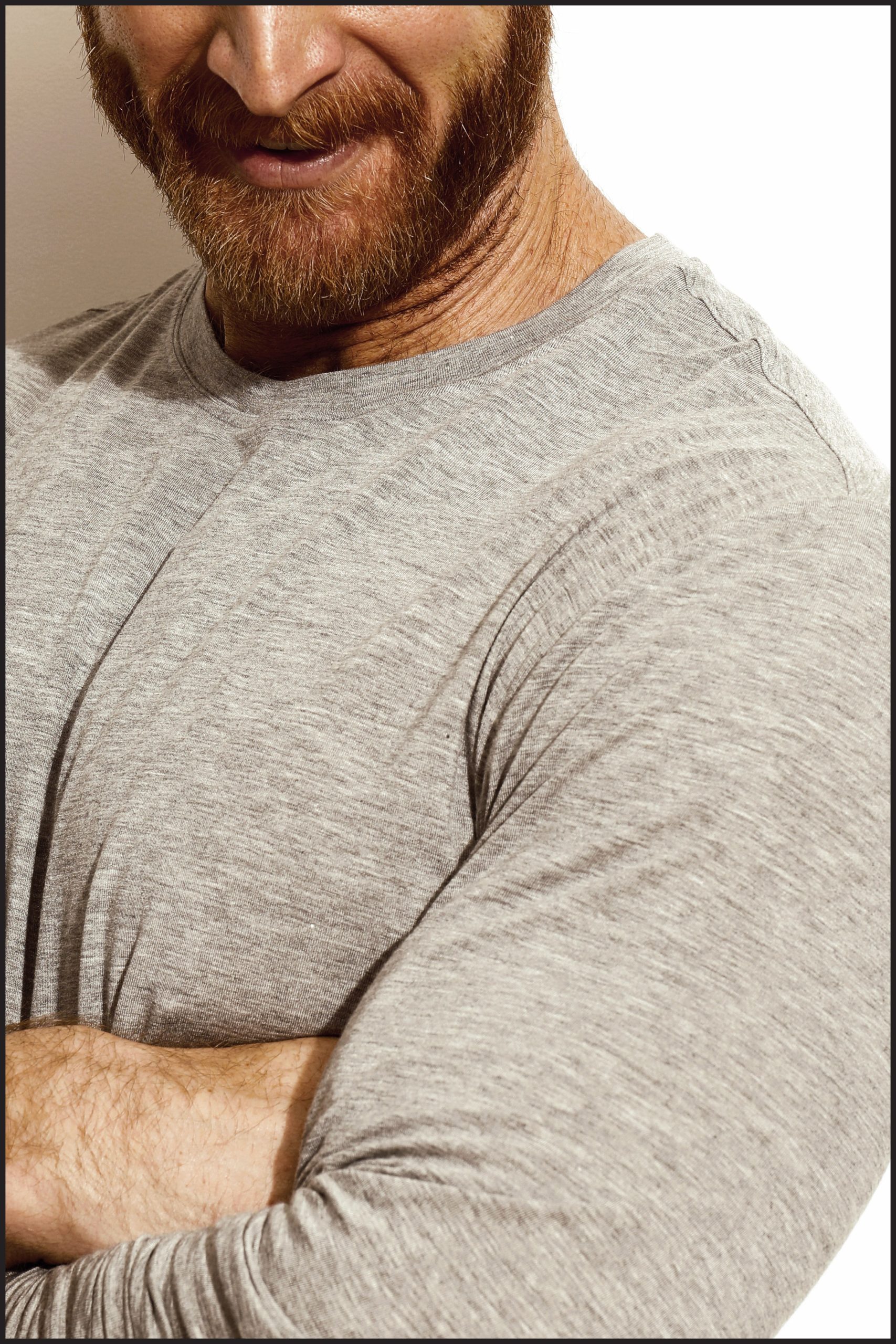 Charlie by Matthew Zink grey micromodal Classic Long Sleeve Tee Shirt. ?Long Sleeve Tee Shirt has shaped shirt tail hem.