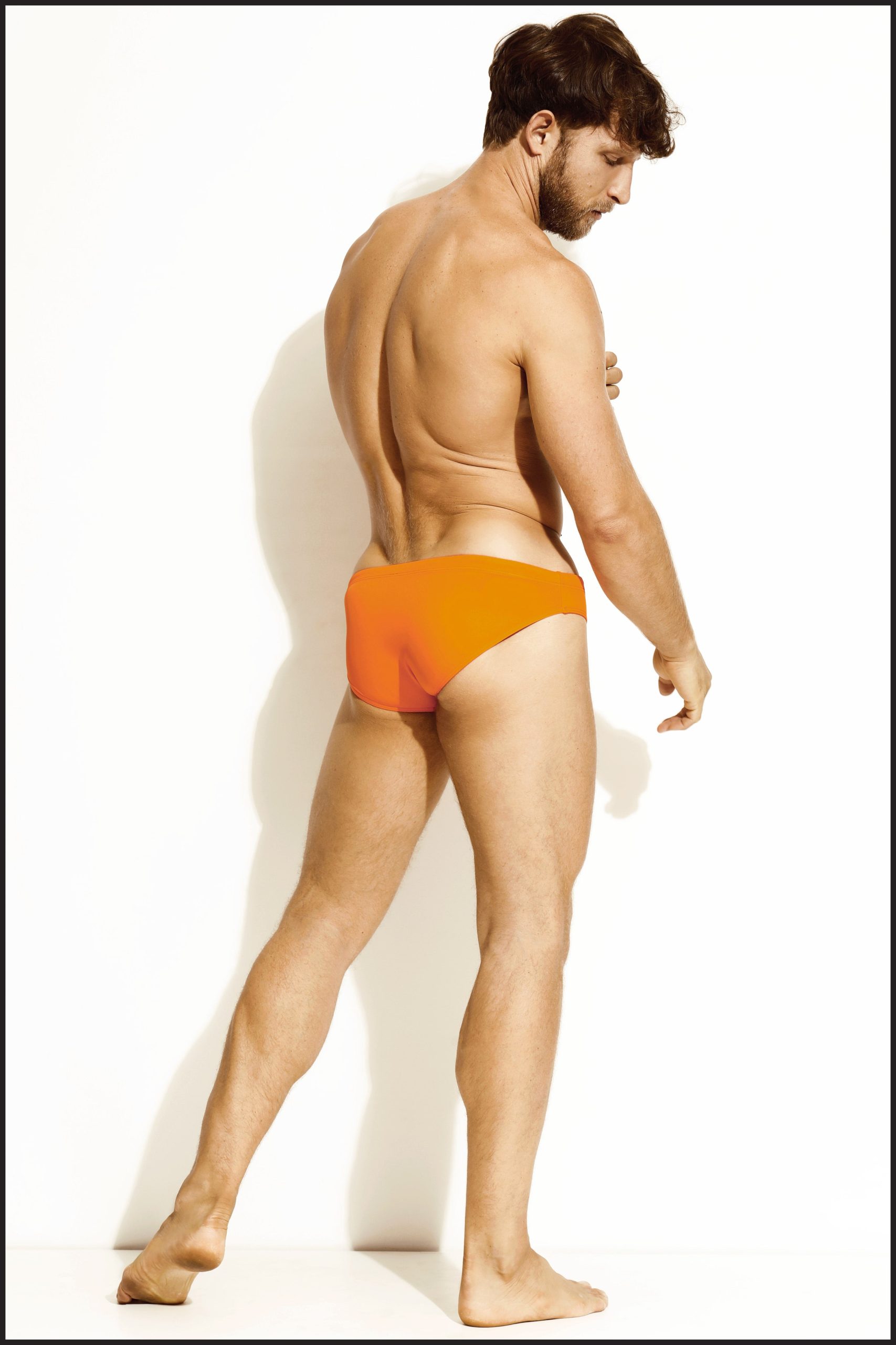 Classic Orange Lowrise Brief with inside drawstring waist. Front lined.