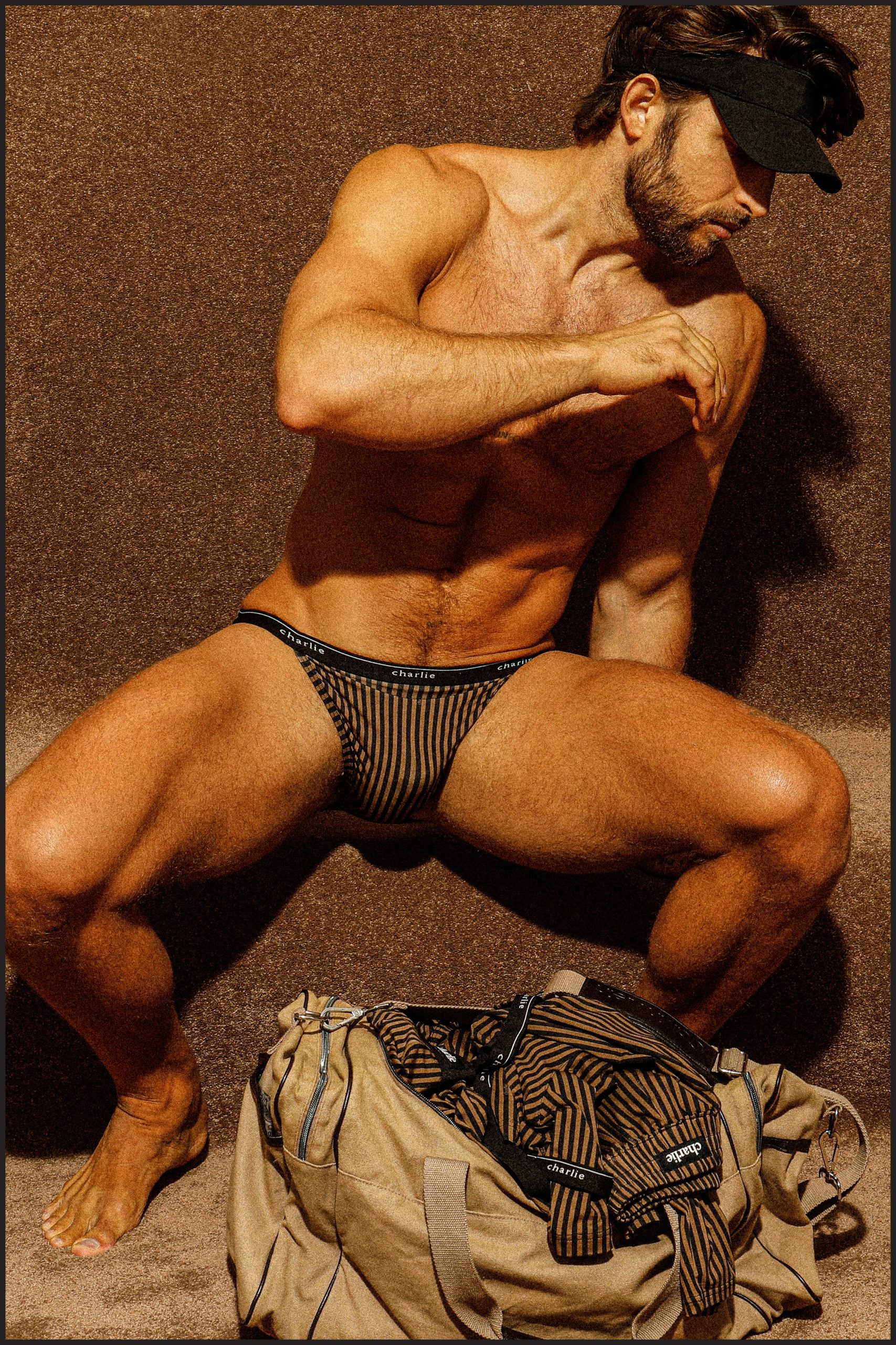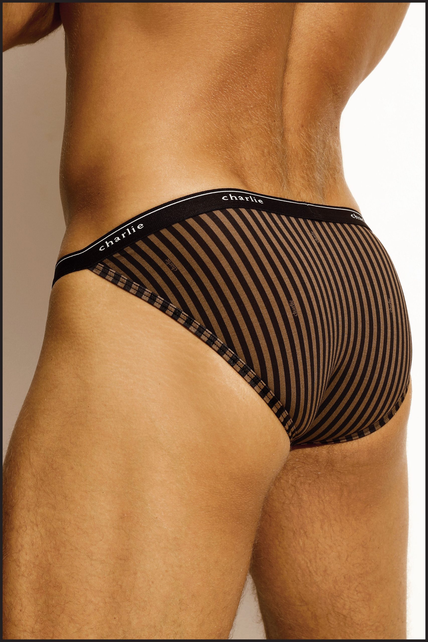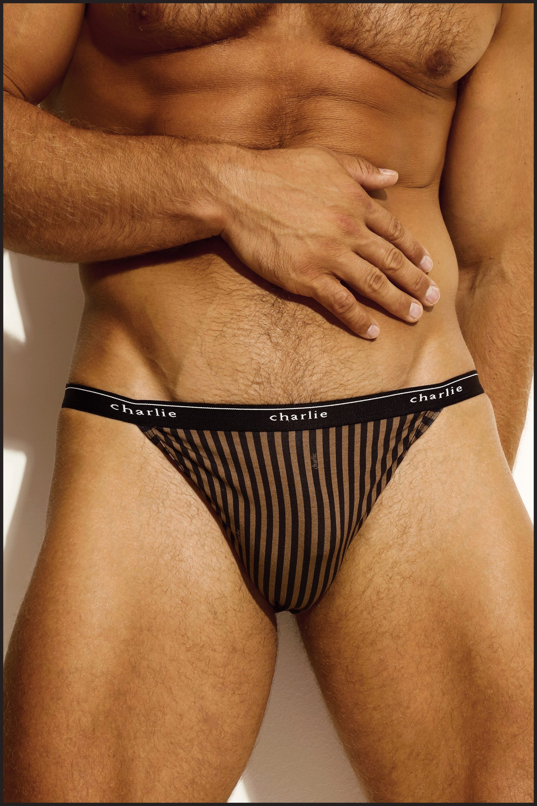 Charlie by Matthew Zink Icon Stripe printed Muscle Brief with 2 cm logo waistband. Single layer front pouch.