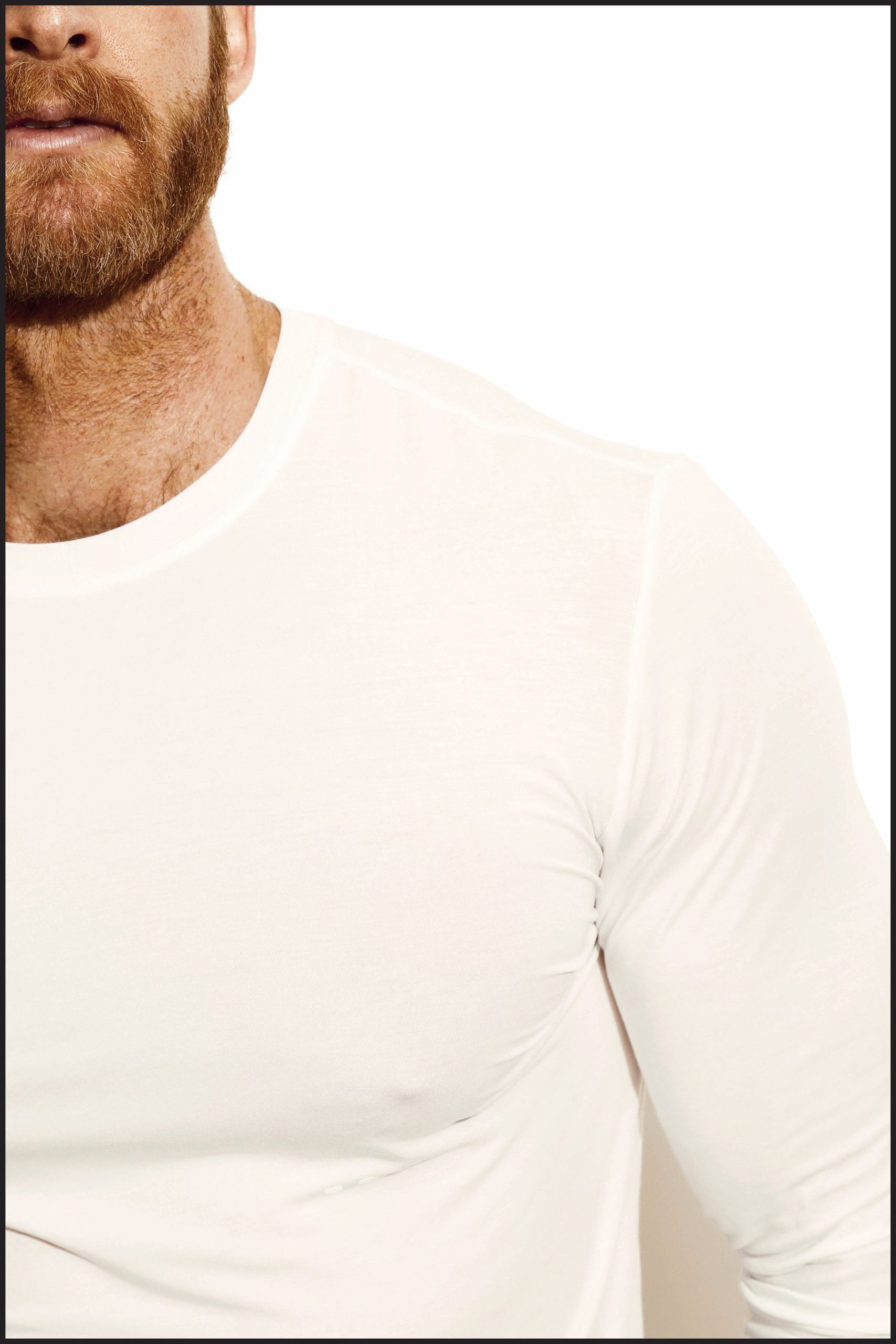Charlie by Matthew Zink white micromodal Classic Long Sleeve Tee Shirt. ?Long Sleeve Tee Shirt has shaped shirt tail hem.?