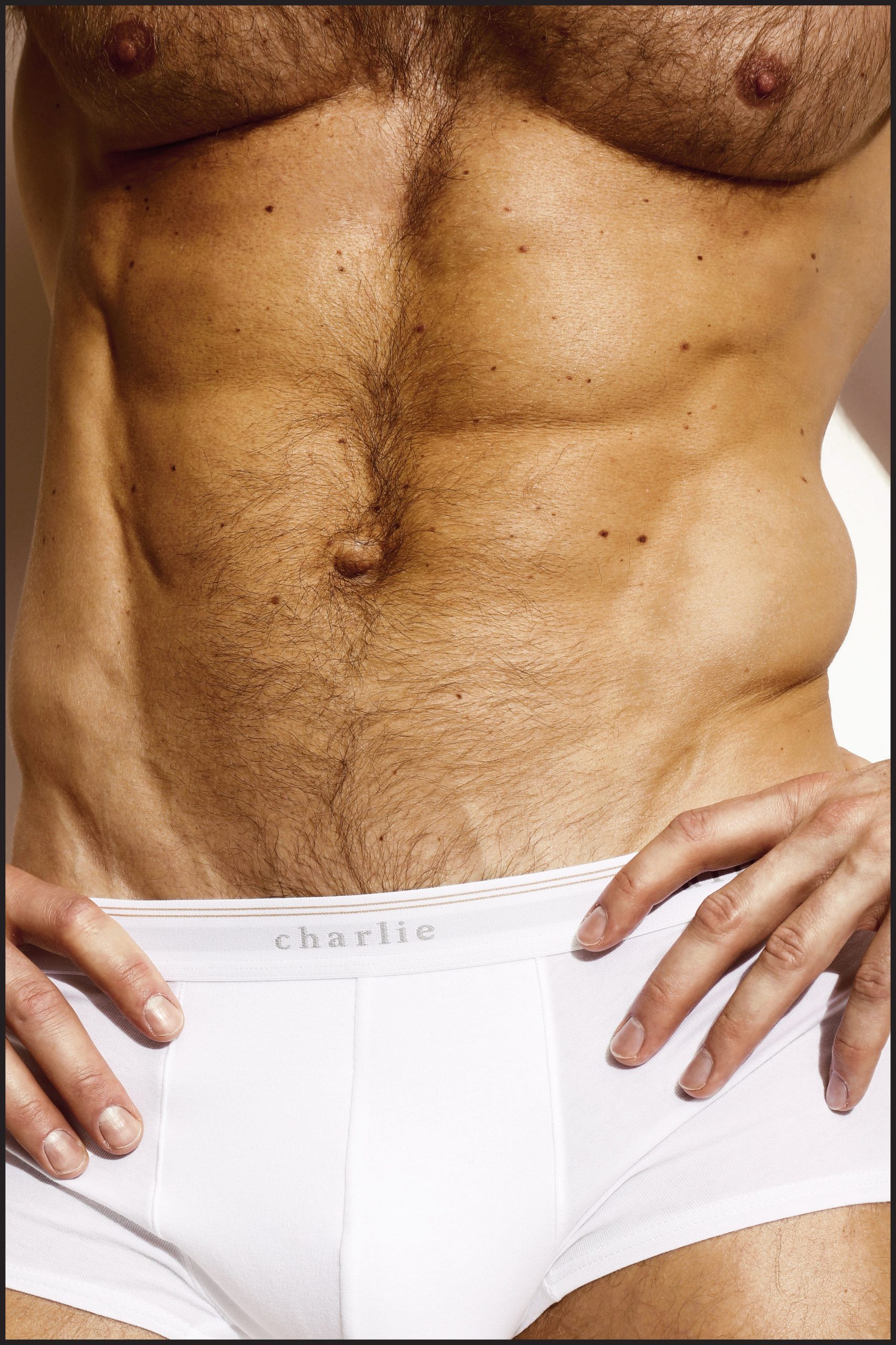 White Charlie Classic Trunk with white logo waistband elastic. Double-layer front pouch.