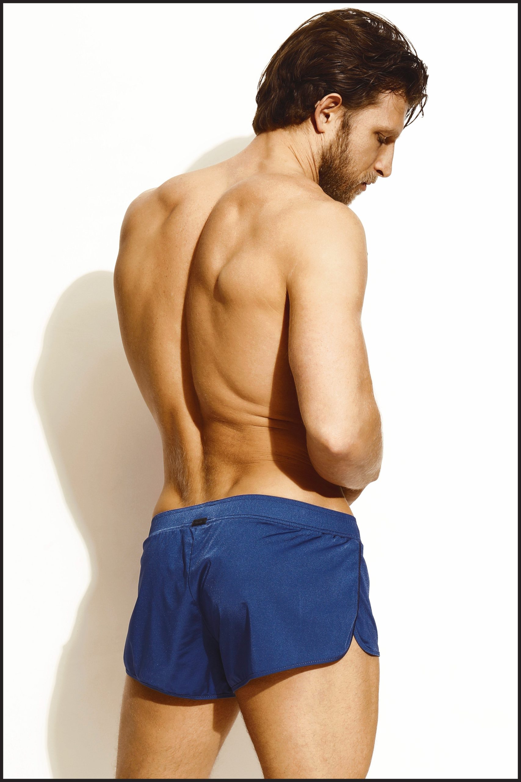 Charlie by Matthew Zink Pacifico Liquid Swim Short. Liquid Short has overlapping sides for maximum freedom. Thong brief liner with shaped back thong panel for maximum comfort and minimal visibility. Our signature liquid fabric is sensually silky and lightweight for an almost naked feeling with a subtle luster. Matte black label.