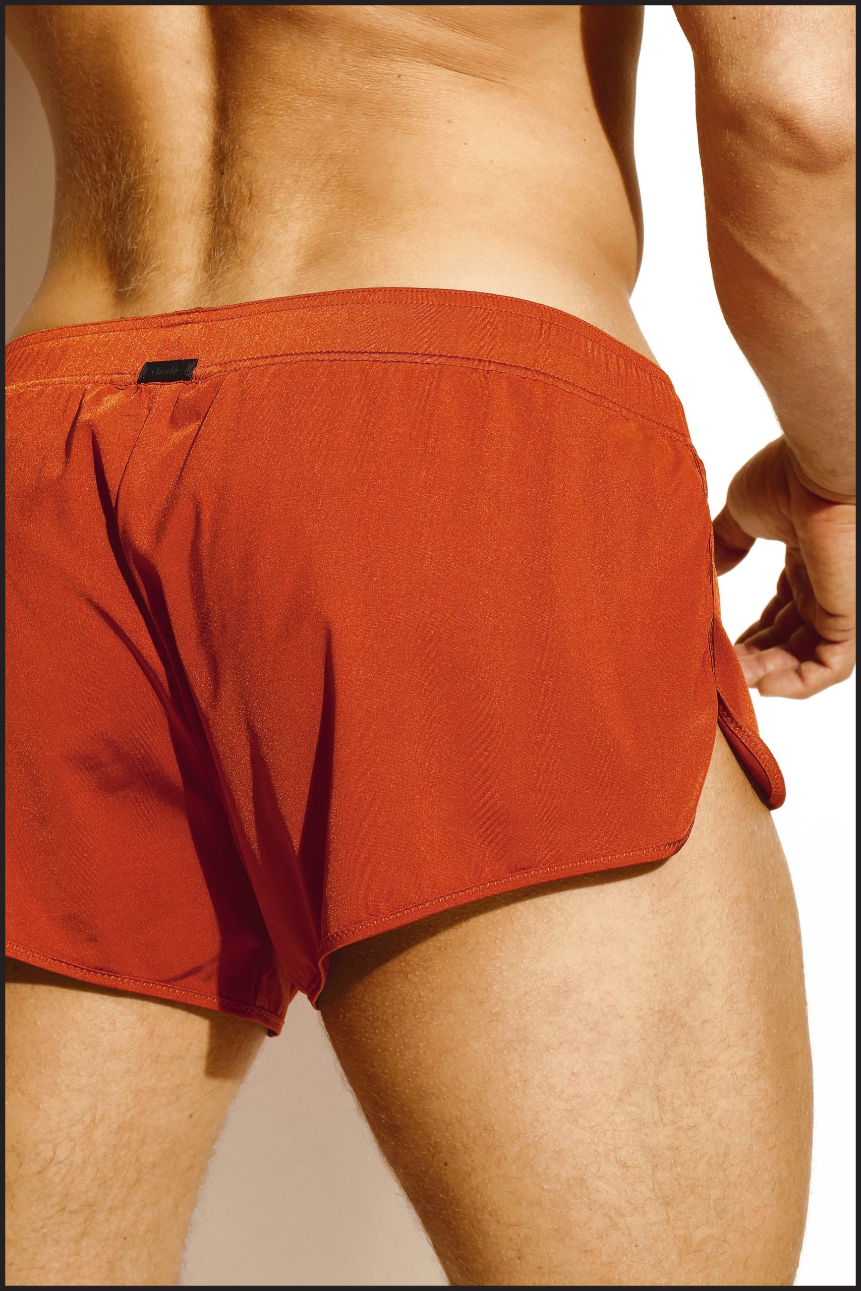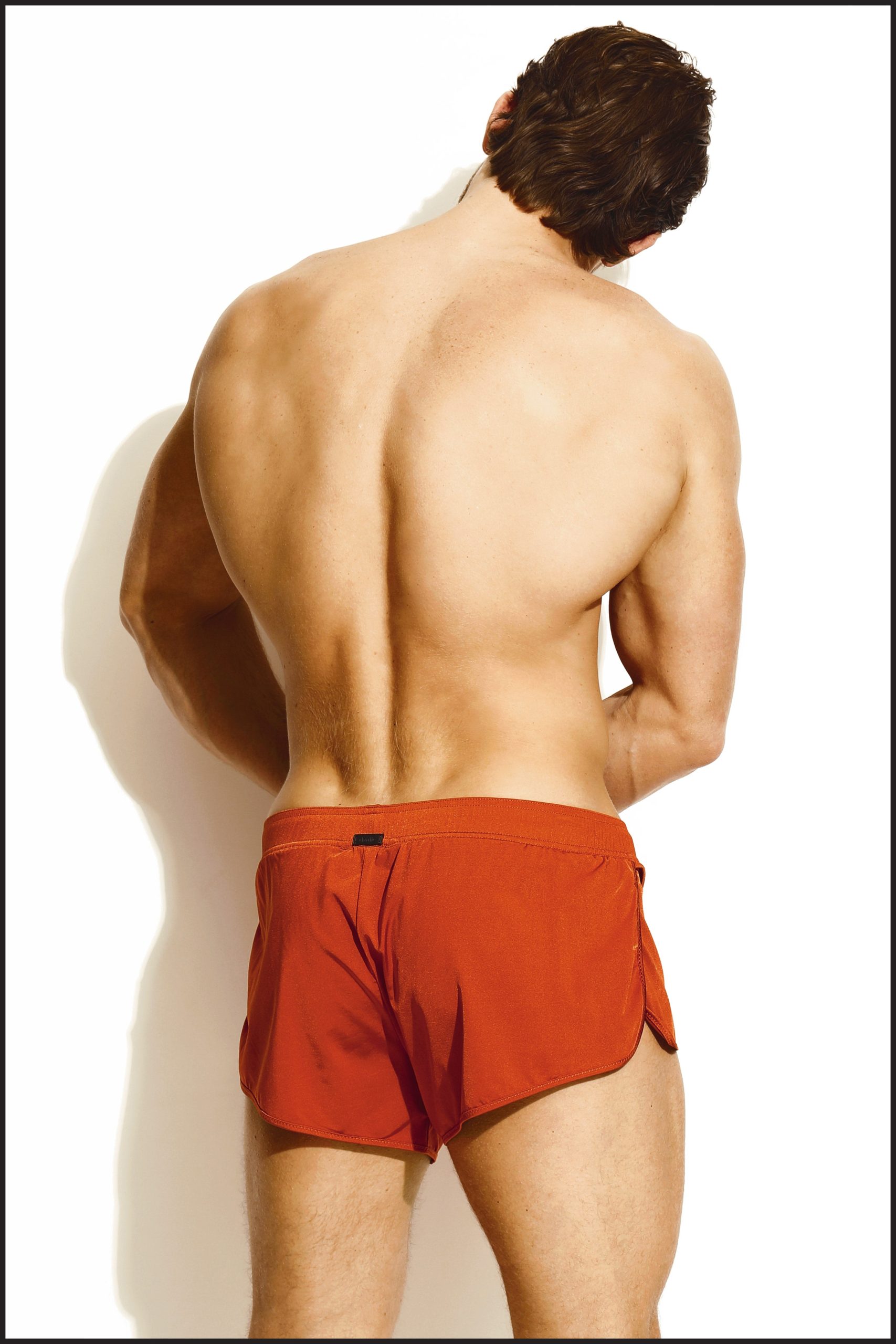 Charlie by Matthew Zink Chili Liquid Swim Short. Liquid Short has overlapping sides for maximum freedom. Thong brief liner with shaped back thong panel for maximum comfort and minimal visibility. Our signature liquid fabric is sensually silky and lightweight for an almost naked feeling with a subtle luster. Matte black label.