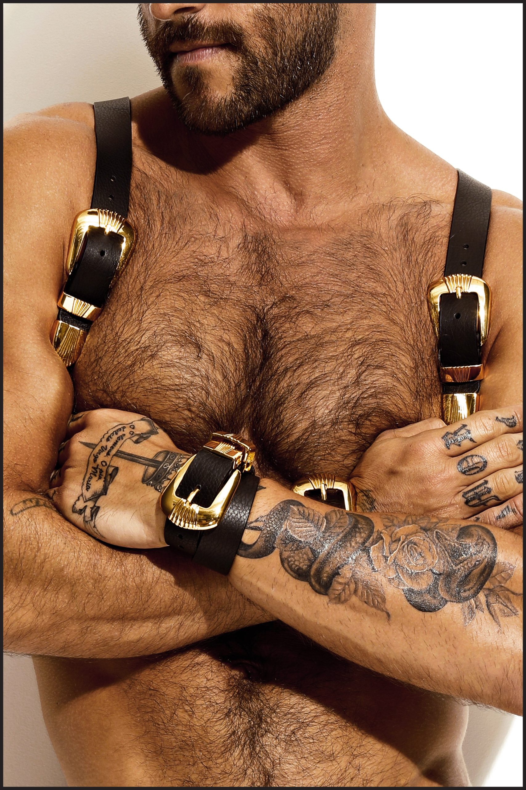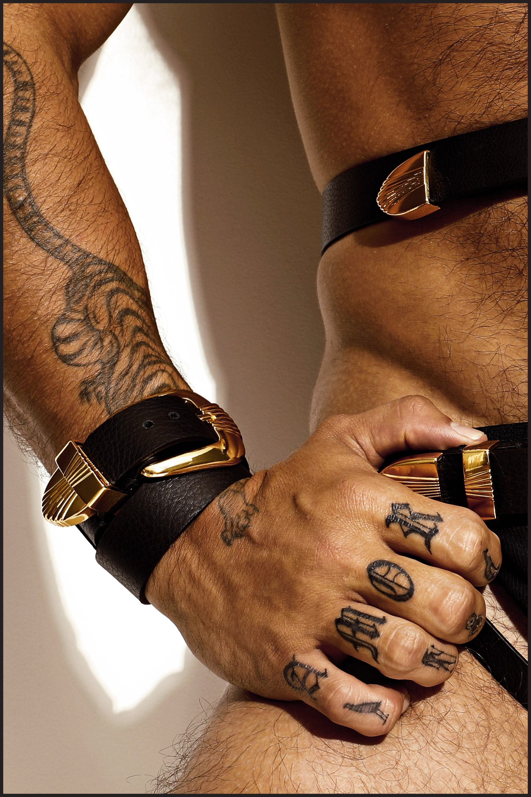 Adjustable Stallion Leather Cuff with gold stallion hardware. 1 1/8 wide. Hand-inked edges.